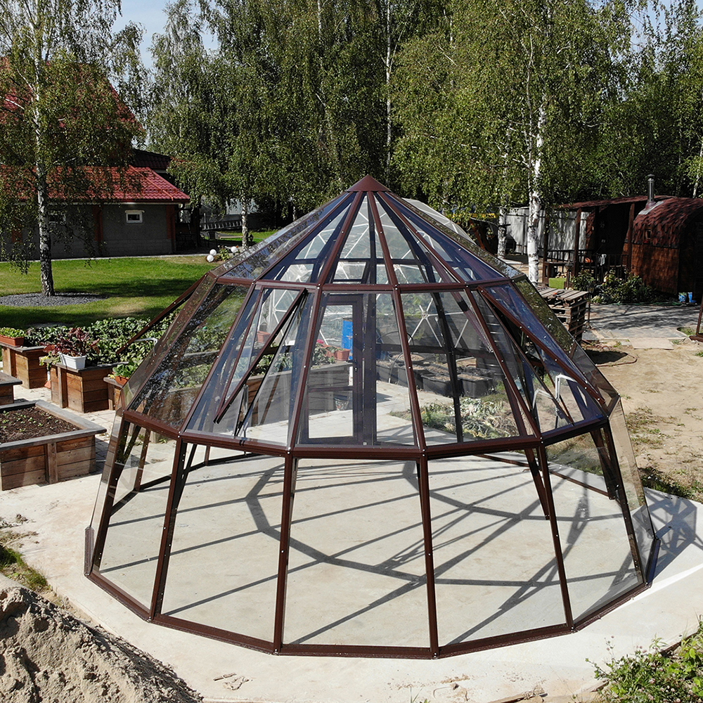 Изначально теплицы GLASS HOUSE разрабатывались под покрытие стеклом, поэтому запас прочности конструкции позволяет с легкостью выдерживать повышенные ветровые и снеговые нагрузки!