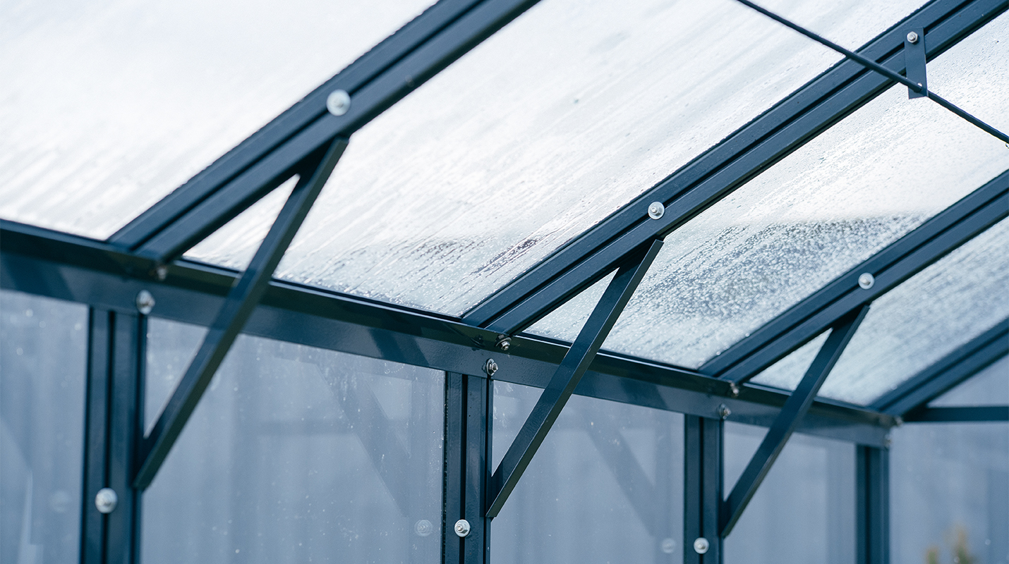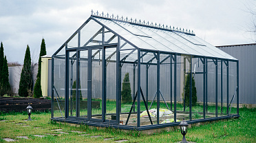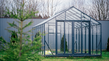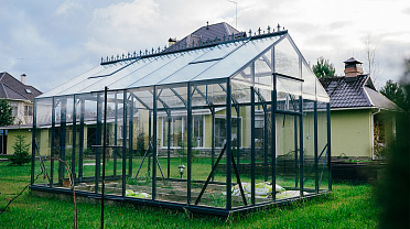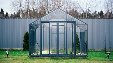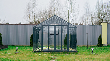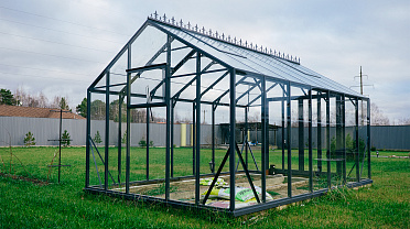 Выверенные пропорции и прямые стенки формируют удобное и функциональное пространство внутри. Теплица создаёт аккуратный архитектурный акцент на участке, обеспечивая комфортную работу с растениями и продуманную организацию посадок.
