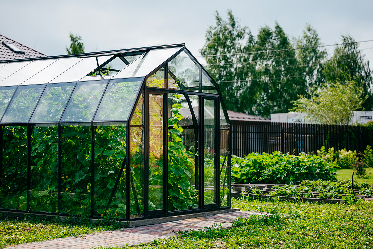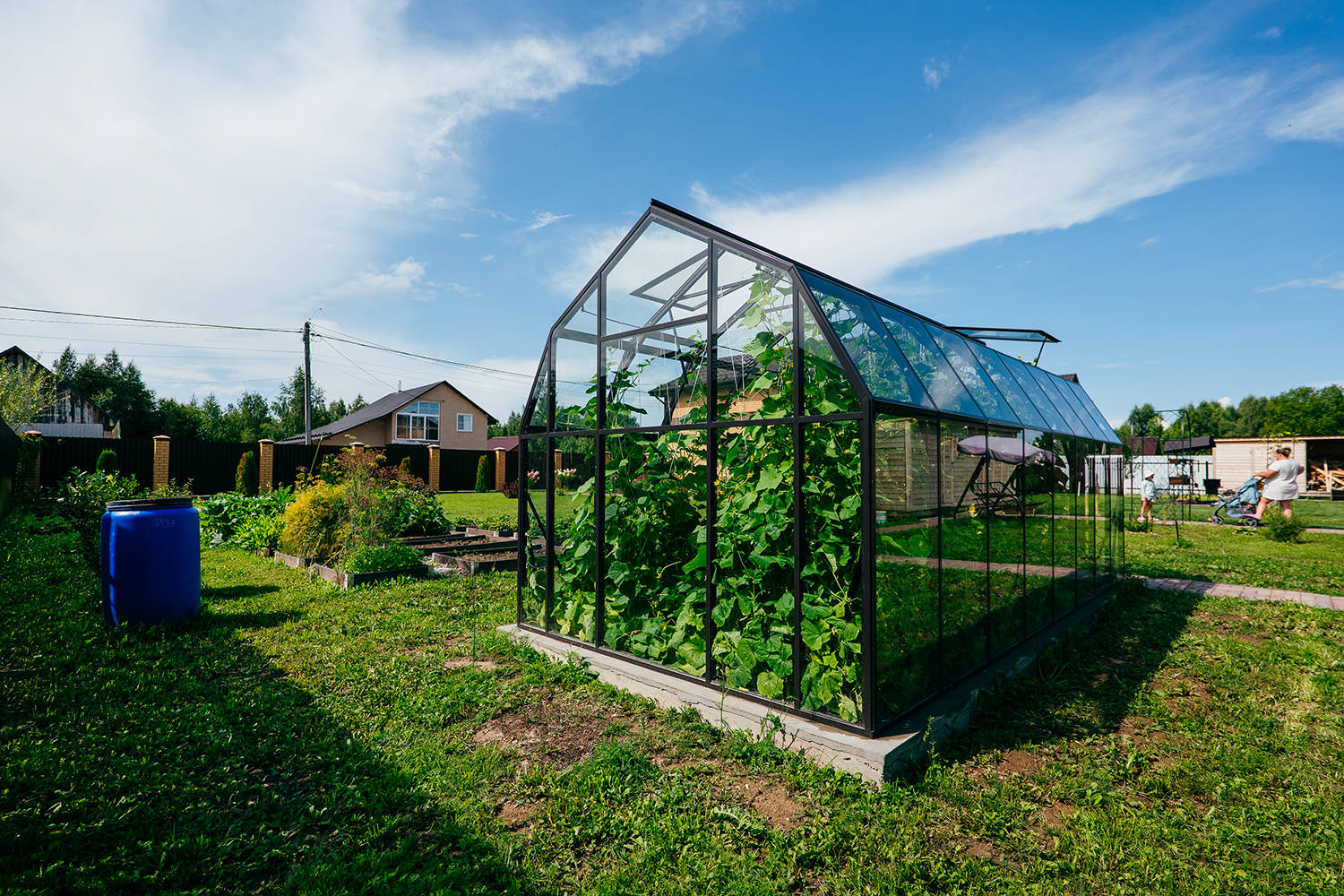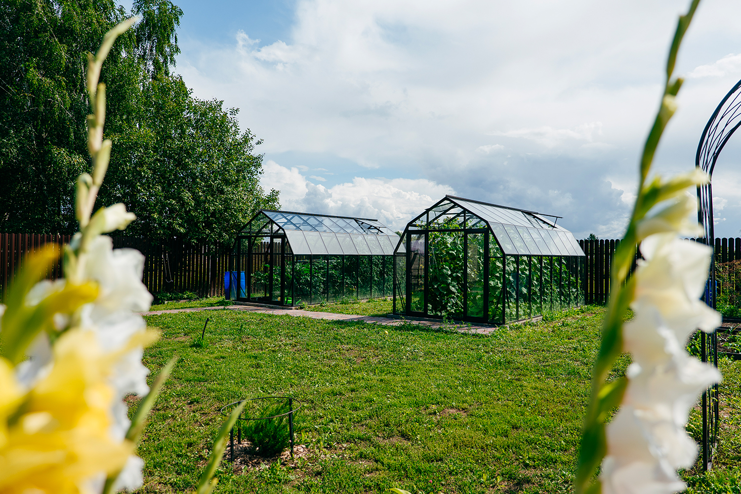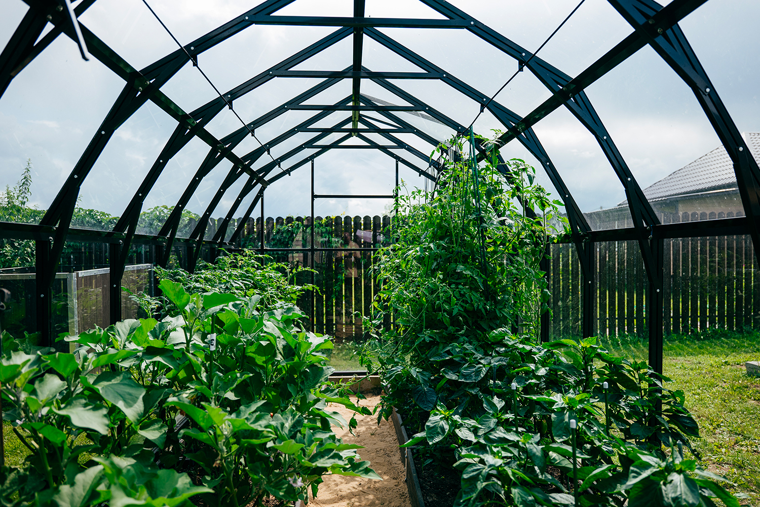 Две теплицы КРИСТАЛИКА Классик – выверенная архитектура и уверенная конструкция. Чёткая геометрия формирует гармоничную композицию на участке, а продуманное решение обеспечивает стабильность и надёжность в эксплуатации.