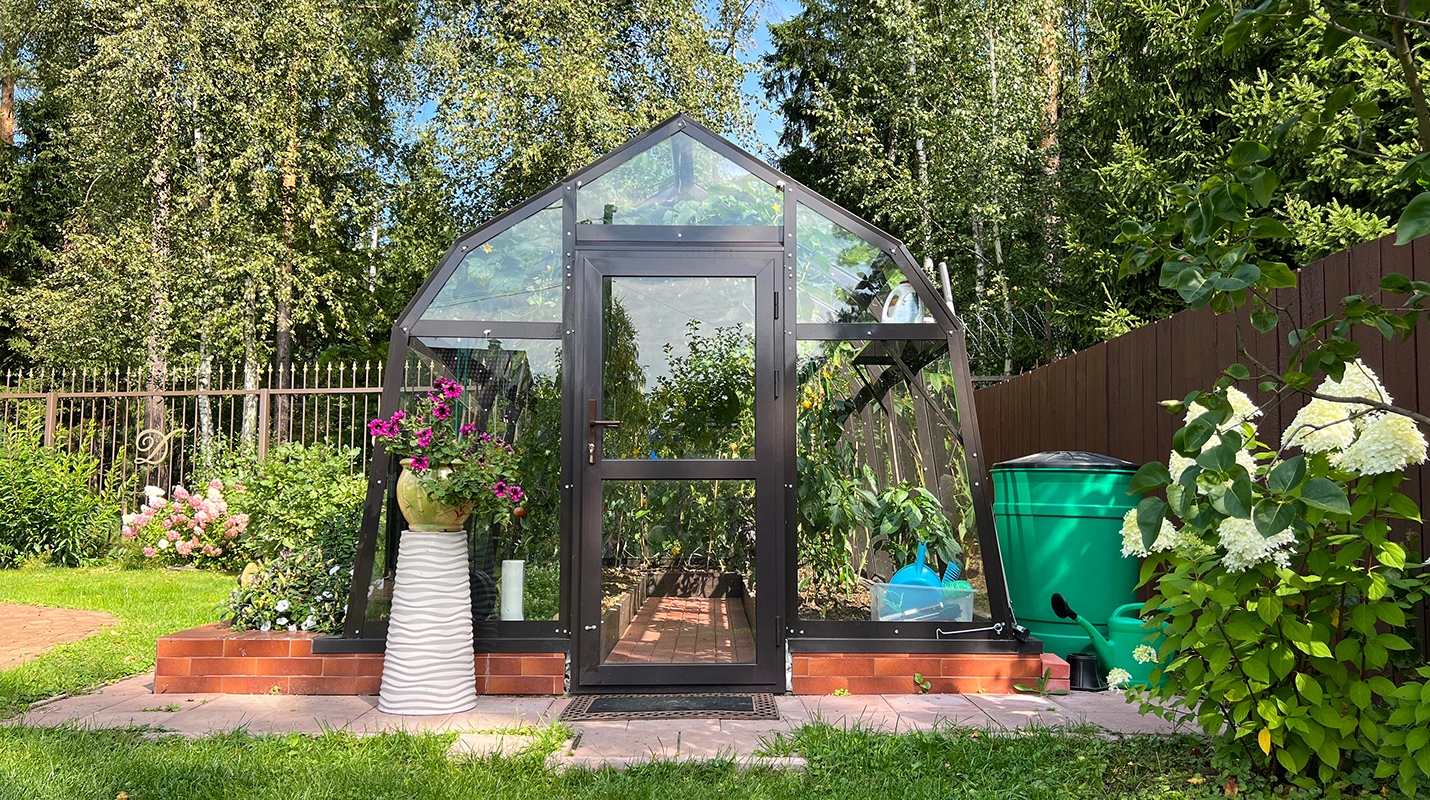 Компактное решение для рассады и небольшого участка с акцентом на удобство в работе. Несмотря на аккуратные размеры, внутри сохраняется комфортное пространство и достаточная высота, позволяя свободно работать и выращивать разные культуры.